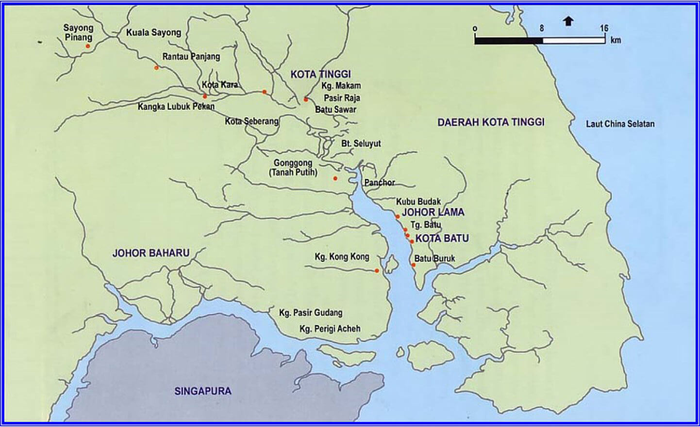 Pusat pemerintahan Kerajaan Johor Lama di Sungai Johor. (Sumber : N.A.Halim, 1990. Kota-kota Melayu)